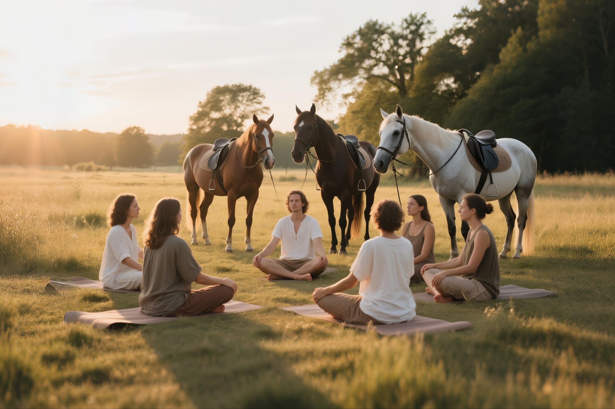 Our equine experiences are designed around ground-based interaction (no riding required). The focus is on heart coherence, nervous system regulation, and non-verbal communication.